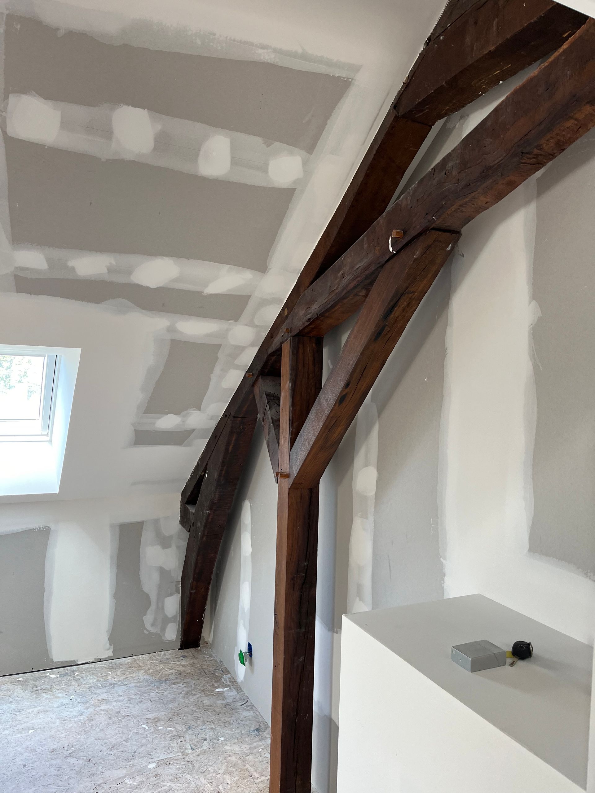 La cloison peut être phonique, acoustique, hydrofuge, coupe-feu et isolante. À la suite des travaux de pose de cloison, nous réalisons des travaux de plâtre traditionnel aussi bien en neuf qu'en rénovation.